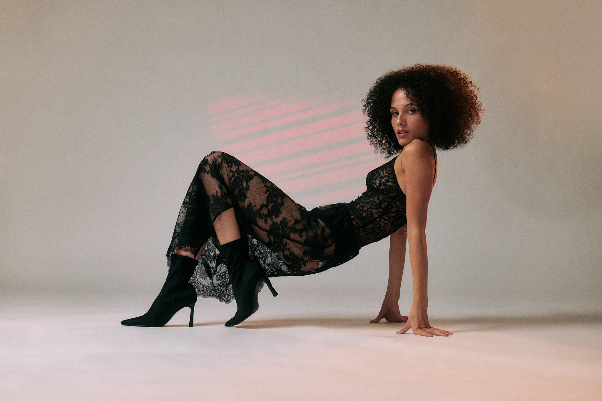 Sedcard Shooting Patricia Forstreiter – ein Sedcard Shooting im Studio mit Patricia Forstreiter. Mehrere Looks, verschiedene Stimmungen – schwarzes Spitzenkleid, hellblauer Flauschmantel, Navy Ballonärmel-Kleid, gelbe Hose, Jeans und weißes Top. Jeder Look ein eigenes Bild, alle zusammen eine Sedcard die Vielseitigkeit zeigt.
